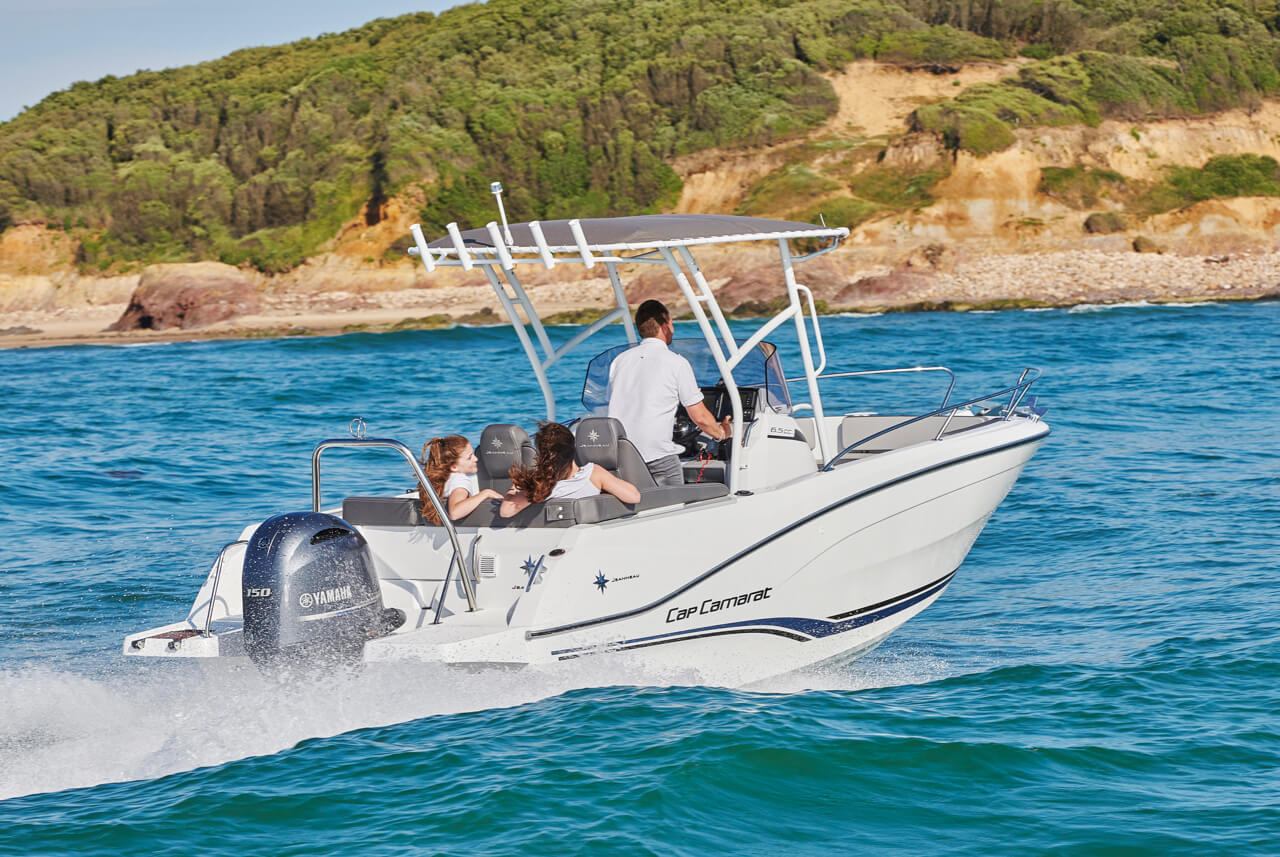 This new CAP CAMARAT 6.5 CENTER CONSOLE SERIE 3 features a new hull designed by Michael Peters. Guarantee of excellence, this hull boasts the inherent seaworthy qualities of the CAP CAMARAT line. This model features the strong points of the previous generation with the addition of the latest evolutions and innovation. Her entirely redesigned hull is dynamic and powerful. Equipped with 200 HP, the CAP CAMARAT 6.5 CENTER CONSOLE SERIE3 cleverly balances ease of handling, design and comfort on board.